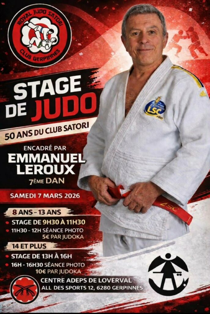 Ce samedi 07 mars 2026 est organisé un stage de judo par le club Satori Gerpinnes à l’occasion de leur 50 ans.